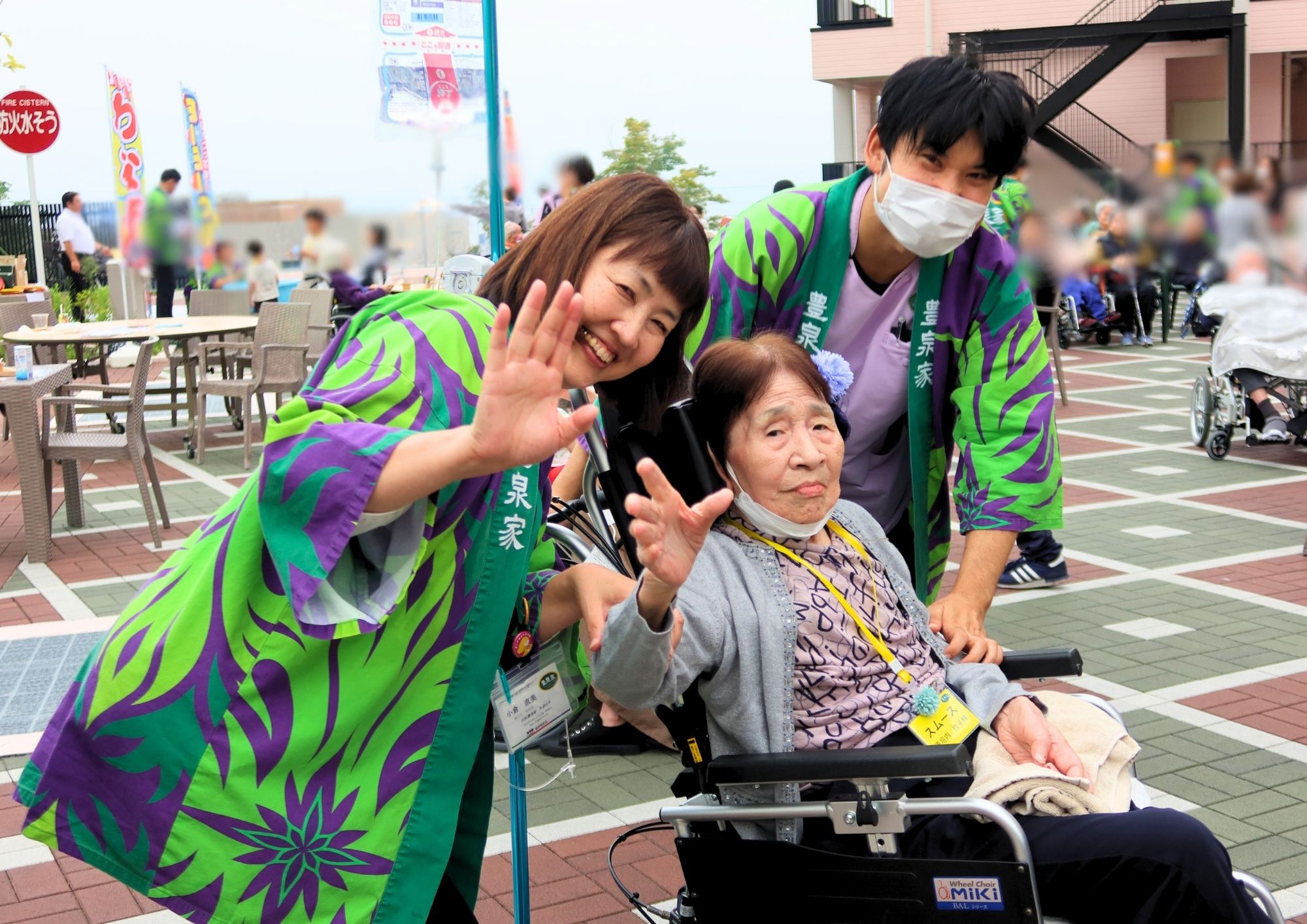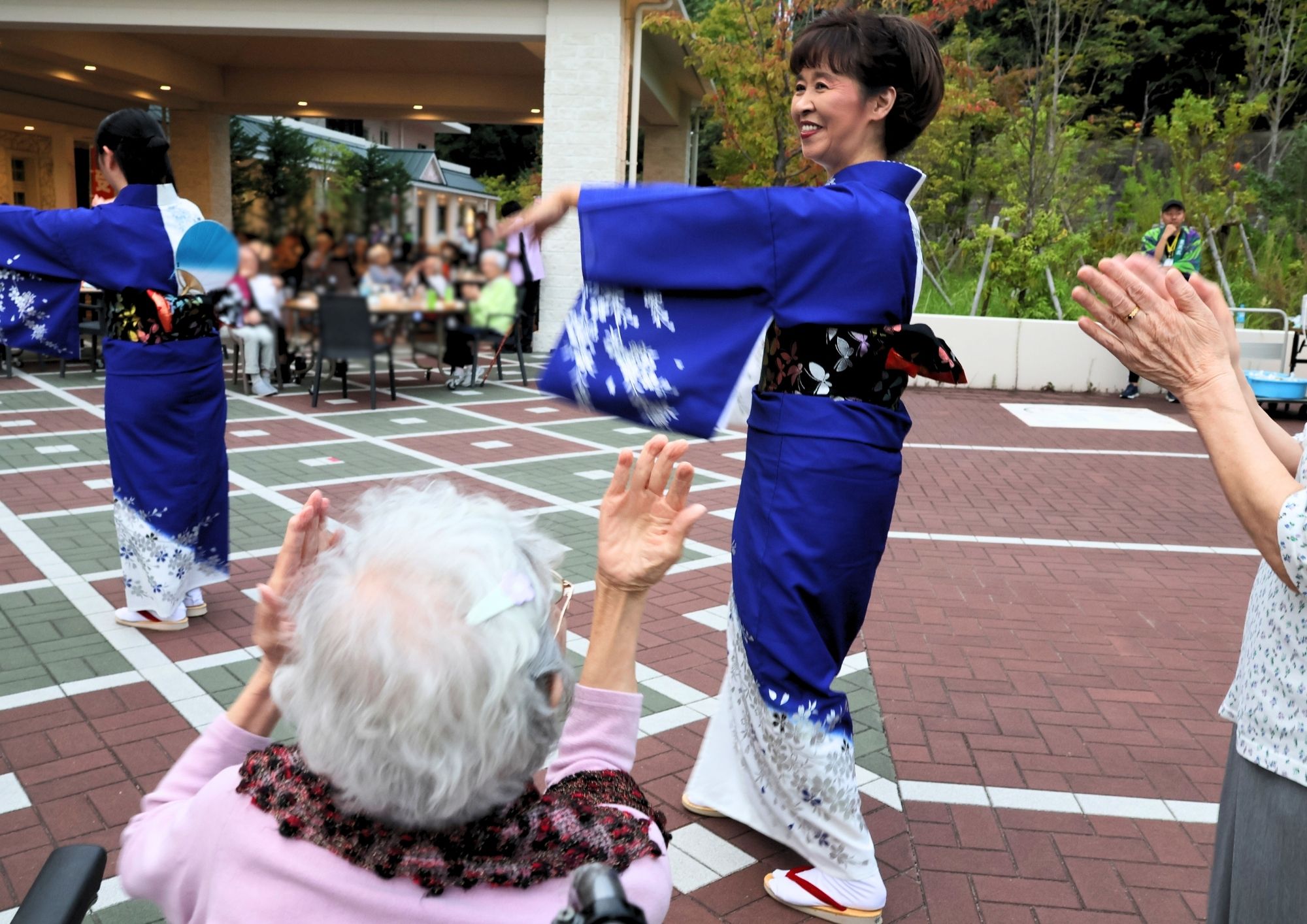 ご入居者の皆様、またご家族や地域の方たち、学生ボランティアの皆様、沢山の方が集う盛大な盆踊り大会となりました。