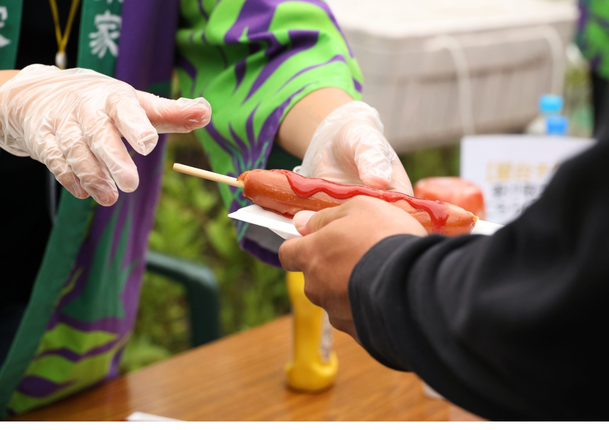 屋台コーナーでは、お祭りには欠かせない定番メニュー・ランクフルトや冷やしパイン、ドリンクなどを楽しんでいただきました。