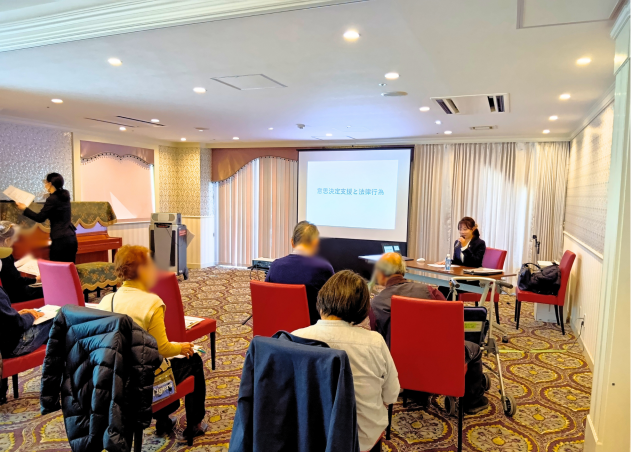 今回の講座には、行政書士法人ゆみあいの代表行政書士であり、終活コンサルタントとしてもご活躍されている川崎 愛子先生をお招きし、「意思決定支援と法律行為」についてご講義いただきました。