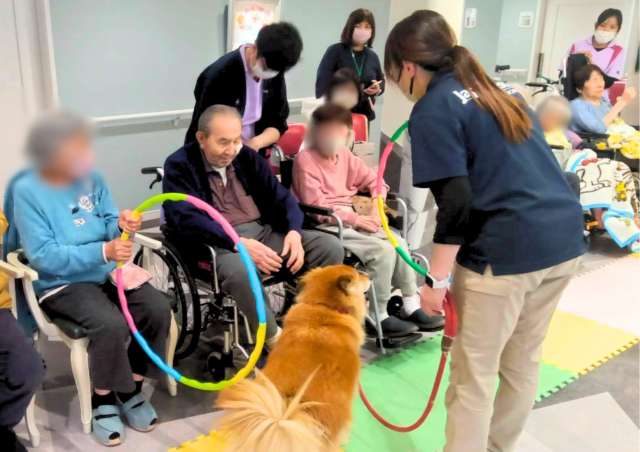 当日は、愛らしいワンちゃんたちがホームを訪れ、その可愛らしい姿にご入居者の皆様の視線は自然と集まりました。