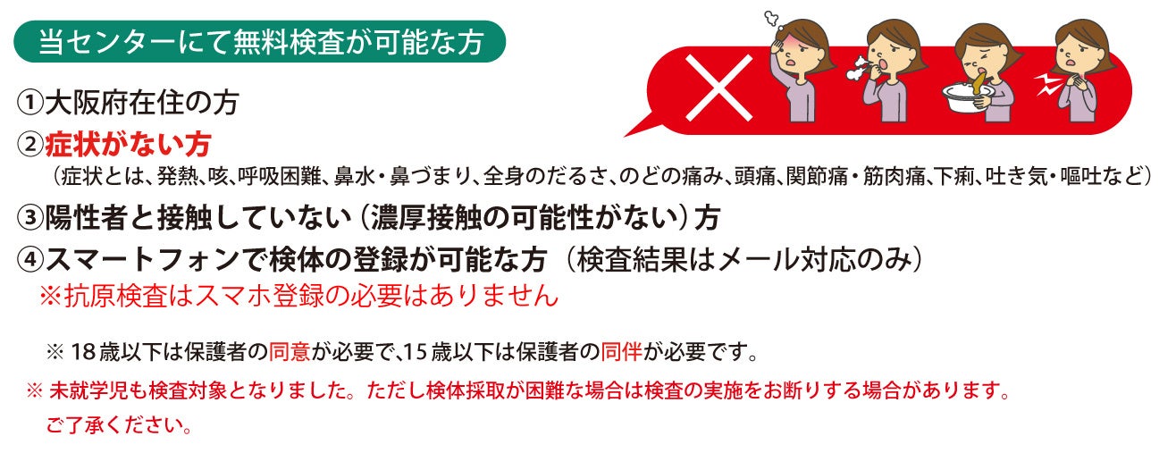 https://www.pref.osaka.lg.jp/kansenshokikaku/kensataisei/muryoukensa.html2.PCR検査を受けられる方はスマートフォンでの登録が必須です。