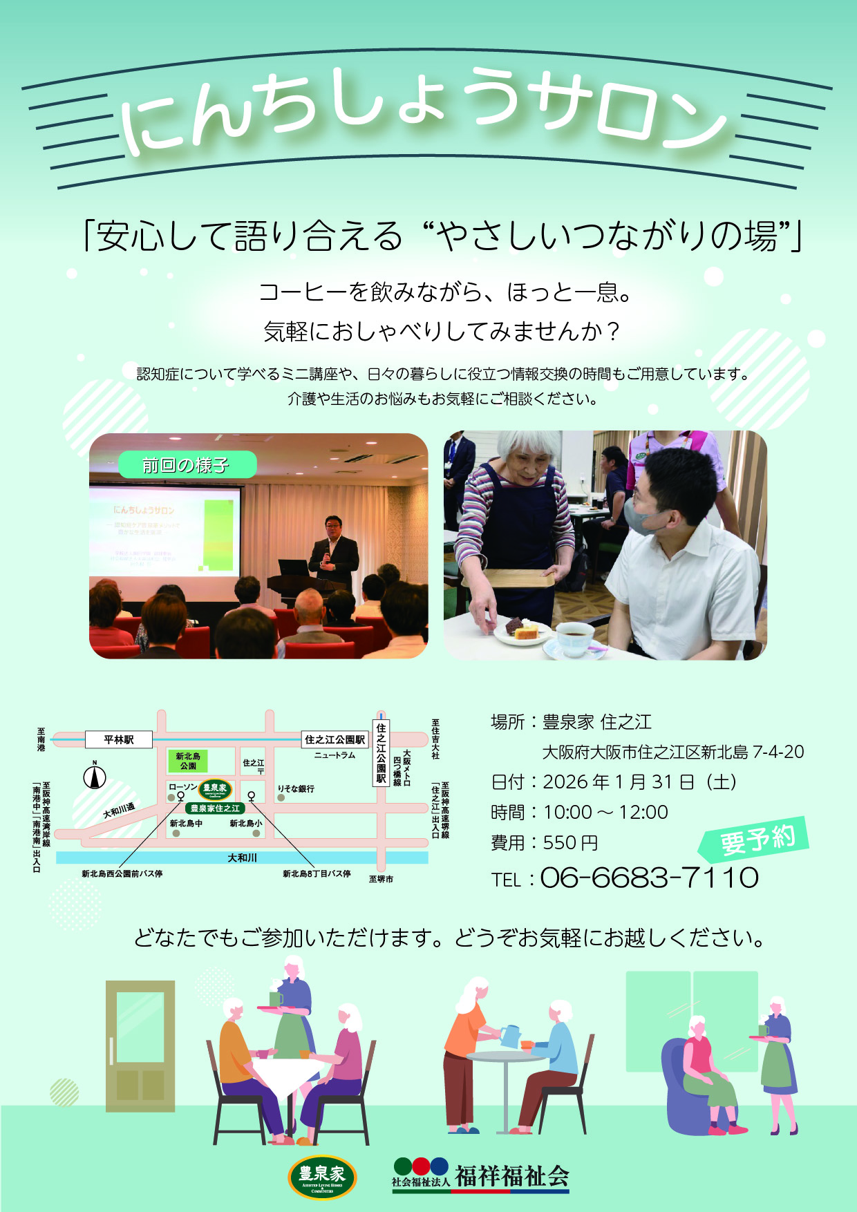 ■内容:認知症について学べるミニ講座、お茶を飲みながらの語らいのひととき など