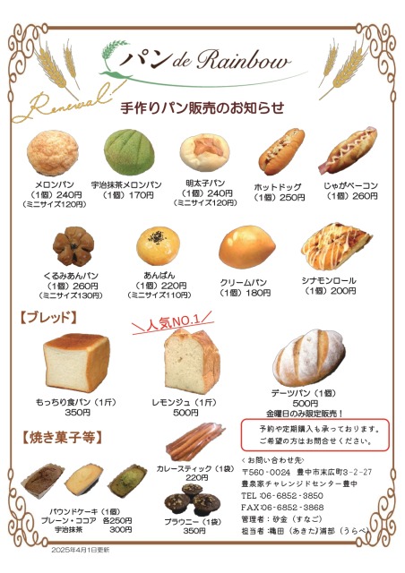 平素よりパン de Rainbowをご愛顧いただき、誠にありがとうございます。