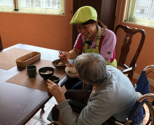 食事の進み具合い等から体調の変化の兆候を読み取り、ご利用者一人ひとりに合った食事の提供方法や、服薬介助等を適切に行います。